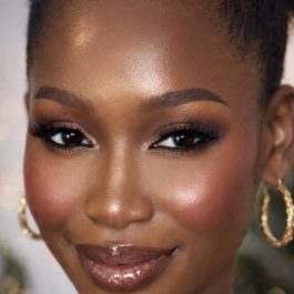 This nude look is all about buildable beauty. You start with Melanin our brown lipstick with red undertones to frame the lips, then layer on with Twist our terracotta gloss for warmth and depth, followed by a light brown gloss to soften and blend the center.